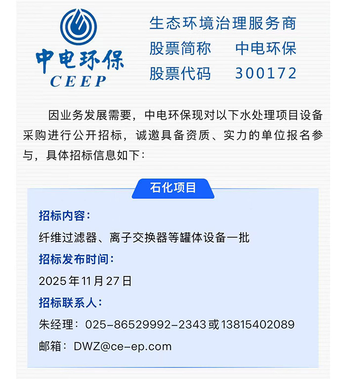 中電環(huán)保股份有限公司是南京市首家環(huán)保上市公司(股票簡稱:中電環(huán)保,股票代碼:300172),南京環(huán)保產(chǎn)業(yè)協(xié)會會長單位,國家級聯(lián)盟理事長單位,是生態(tài)環(huán)境治理服務(wù)商,主營(3+1):水務(wù)、固危廢、煙氣治理及產(chǎn)業(yè)創(chuàng)新平臺,包括:工業(yè)水處理、污水處理及水環(huán)境綜合治理;固危廢土壤、污泥餐廚垃圾處理;煙氣及VOCS治理;智慧環(huán)保;高端裝備等。